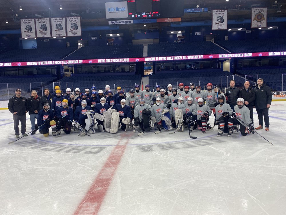 Girls from across all the teams that participate in the Metro Girls High School Hockey League came together on December 28 to participate in the second annual Metro Girls All-Star Faceoff. The event was held at the Allstate Arena and was hosted by the Chicago Wolves.